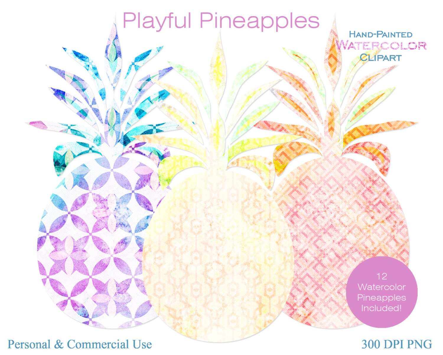Hand painted with watercolor textures clipart set 10 fun tropical watercolor patterned p. Free for commercial use no attribution required high quality images. Pineapple clipart 5299 watercolor pineapples clip art set commercial use pineapple pineapple clipart views.