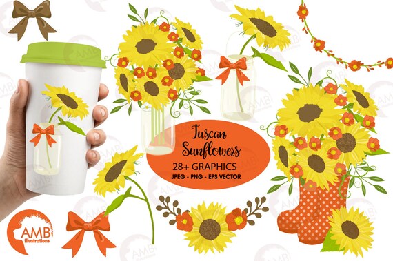 Sunflower Clipart Wedding Clipart Shabby Chic Red Sunflowers Country Wedding Country Party Mason Jar Amb 1434 By Ambillustrations Catch My Party Clipart Flowers Garden Background